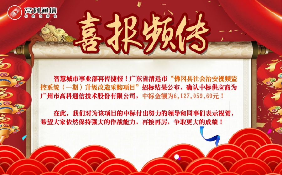 喜報|高科中標佛岡社會(huì )治安視頻監控一期升級改造采購項目